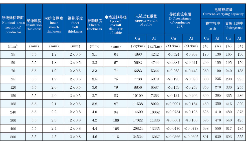 5/IV 12/20kV三芯交聯聚乙烯絕緣,細鋼絲鎧裝,聚氯乙烯護套電力電纜