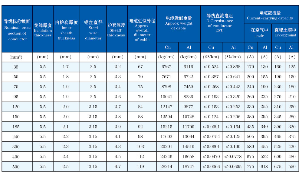 5/IV 12/20kV三芯交聯聚乙烯絕緣,細鋼絲鎧裝,聚氯乙烯護套電力電纜