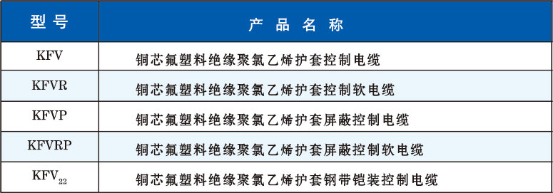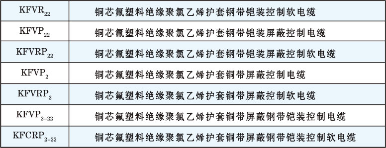 注:氟塑料絕緣和護套聚氯乙烯護套控制電纜在芯數多,截面大的情況下代替氟塑料絕緣和護套耐高溫