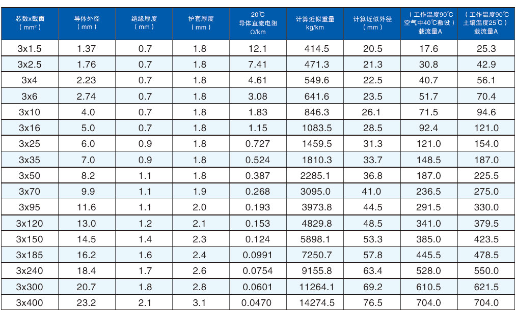 型號:BBTRZ 規格:3x1.5-3x400mm2 額定電壓:0.6/1KV