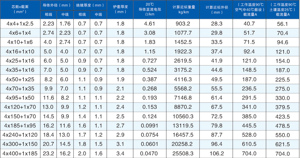 型號:BBTRZ 規格:4x4+1x2.5-4x400+1x185mm2 額定電壓:0.6/1KV
